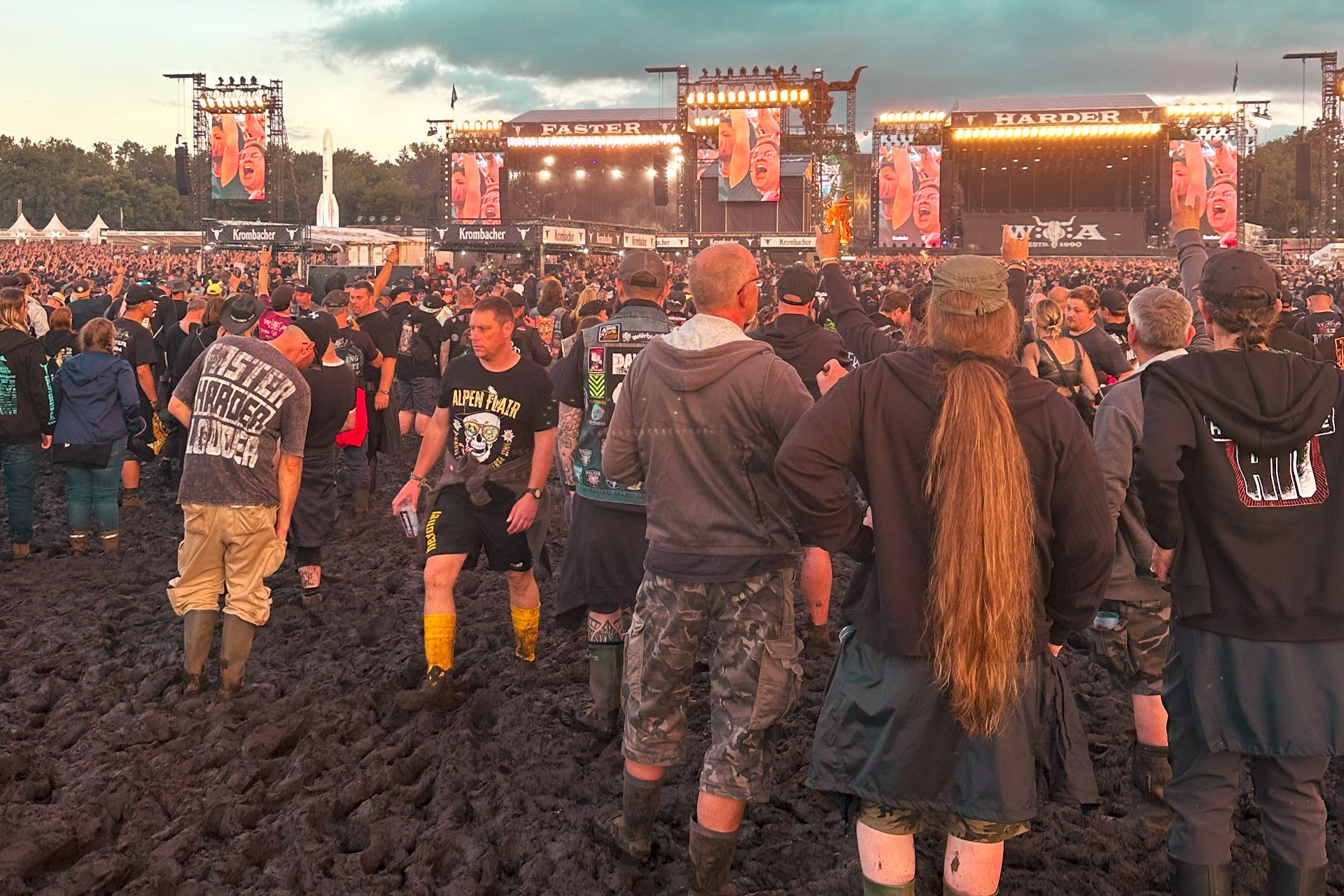 Trotzdem muss man genau an diesem Punkt kurz den Zeigefinger in Richtung Veranstalter heben. Das W.O.A. schreibt sich seit vielen Jahren das Wort »Inklusion« groß auf die Fahnen. Und natürlich kann niemand etwas fürs Wetter und natürlich möchte man den Acker so unberührt wie möglich lassen, denn schließlich schreibt man sich ja auch das Wort »Nachhaltigkeit« auf eben diese Fahnen. Trotzdem muss es für eine Veranstaltung dieser Größenordnung möglich sein, die Teilnahme für Menschen mit Behinderung in der ein oder anderen Form besser möglich zu machen.