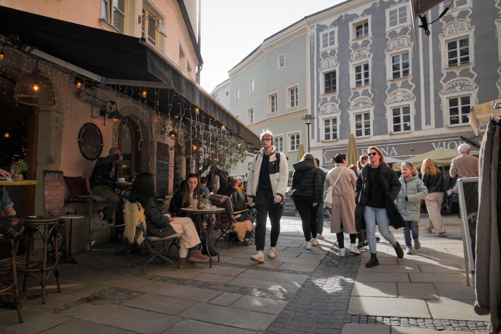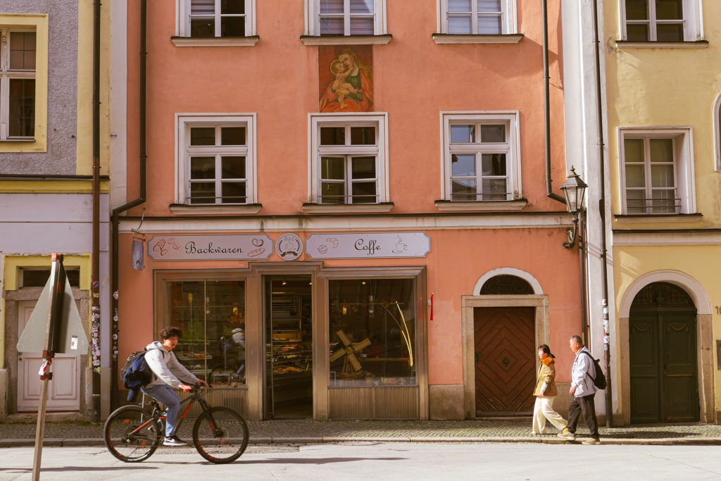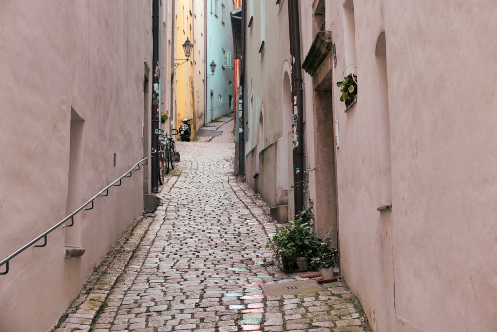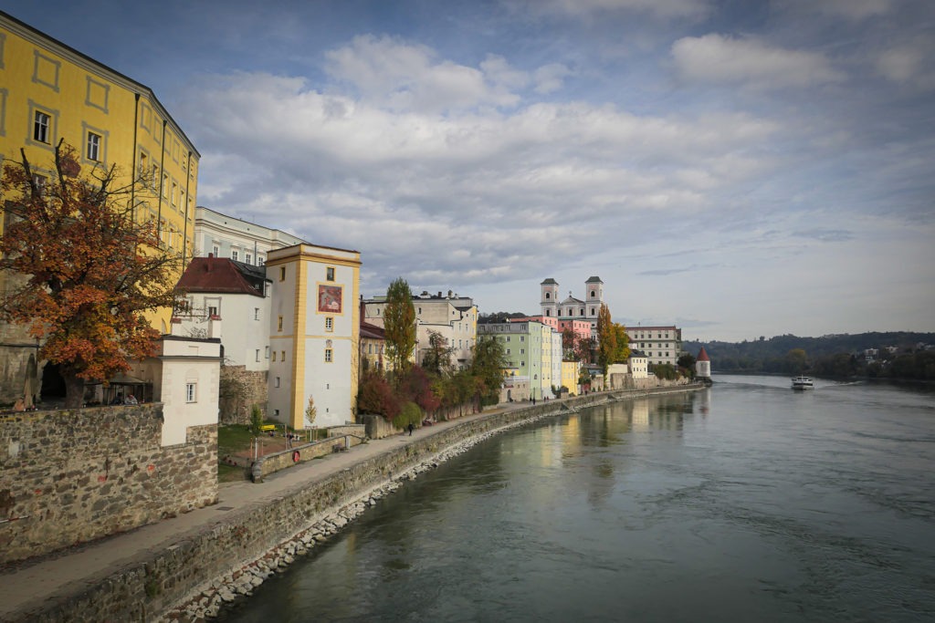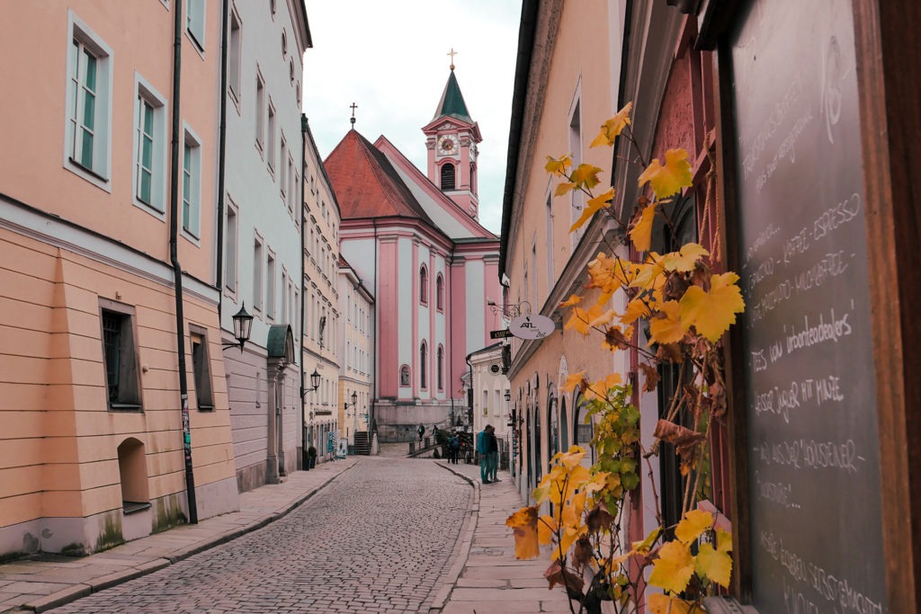 Auf einer langgestreckten Halbinsel zwischen den beiden Flüssen liegt die Passauer Altstadt – und die lädt mal so richtig zu einem ordentlichen Bummel ein. Die engen Gassen, die schiefen Häuser erinnern an so manches mediterrane Städtchen. Dazu kommt, dass es direkt nach der Uferpromenade der Donau steil bergauf geht, sodass die ein oder andere Treppe erklommen werden muss, will man zum Dom. Und zum Dom muss man! Er thront hier über allem und ist in seinem unschuldigen Weiß ein wahrer Blickfang.