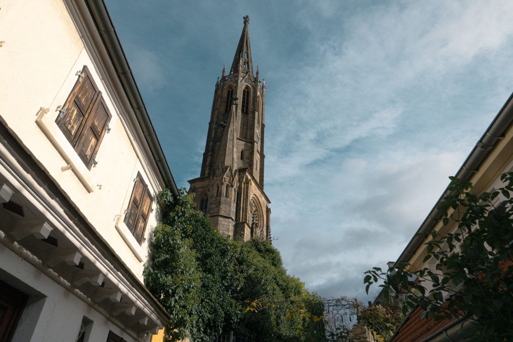 Bad Dürkheim kann sehr gut zu Fuß erkundet werden. Die Stadtväter haben sich für ihre Gäste sogar einen Rundweg durch die Stadt erdacht, der an allen wichtigen Punkten vorbeiführt. Allerdings sollte man sich dafür noch gut auf zwei Beinen bewegen können, denn rund um die Schlosskirche geht es auch mal eine Treppe hinauf und auf der anderen Seite entsprechend steil den Berg hinunter. Insgesamt braucht man für den Rundweg bei gemächlichem Tempo etwa zwei Stunden.