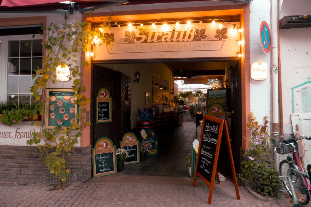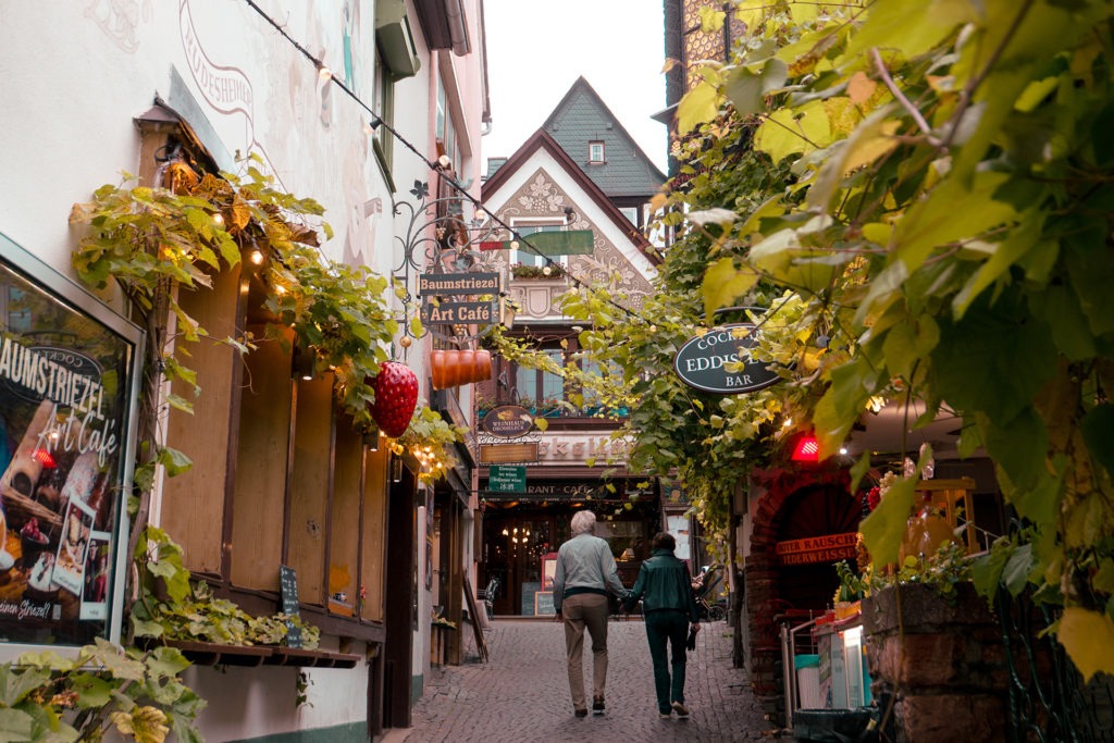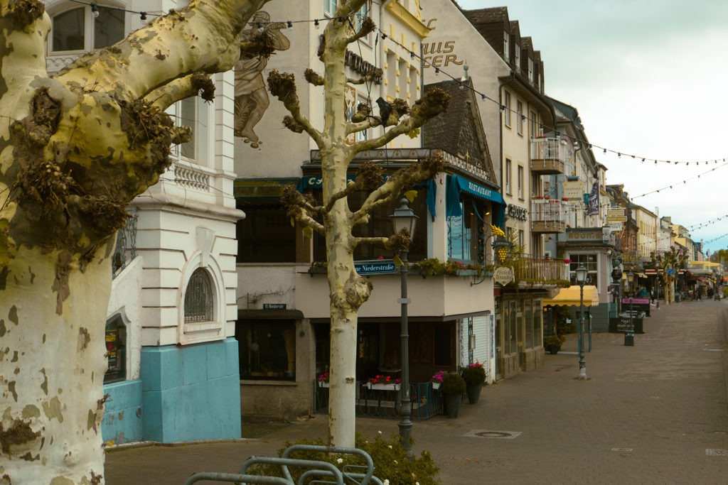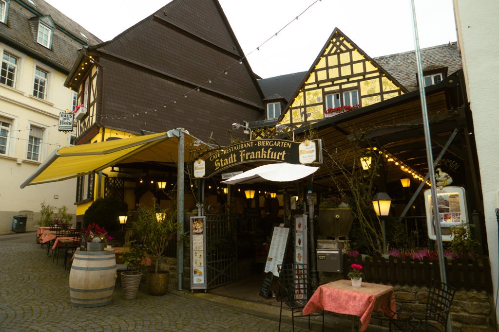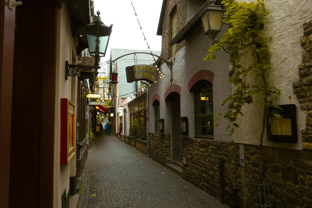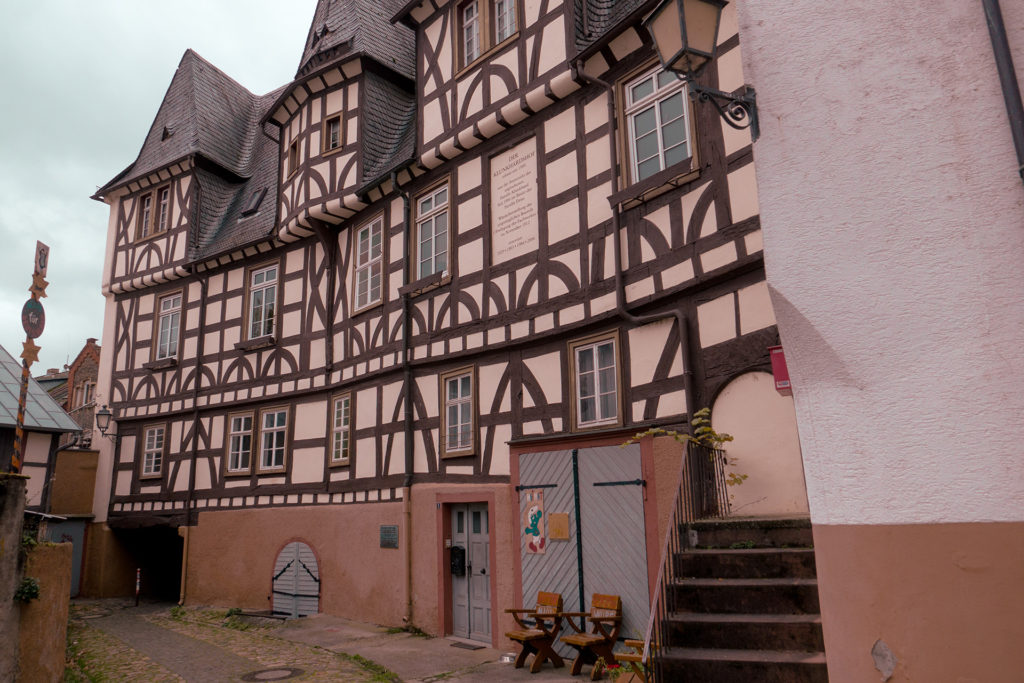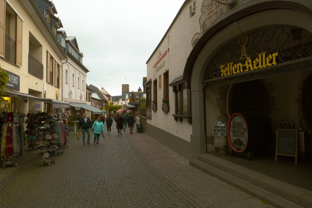 Ein Spaziergang durch die Altstadt lohnt auch hier – wenn auch die Promenade am Rhein nicht so lang ist und vor allem die Geschäfte zum Bummeln fehlen. Dafür bietet sie rund um die Burg einen schönen Park und ist in den engen Gassen bei weitem nicht so touristisch überladen wie Rüdesheim. Und auf dem Marktplatz kann im Sommer mindestens ebenso schön draußen sitzen und das Wetter bei gutem Essen und gutem Wein genießen wie etwa 20 Kilometer den Rhein runter.