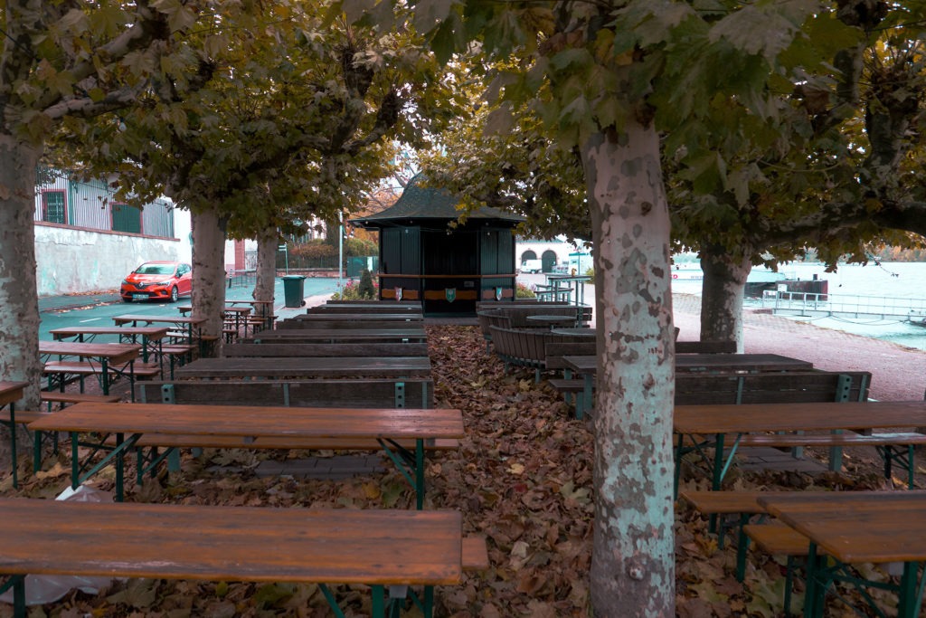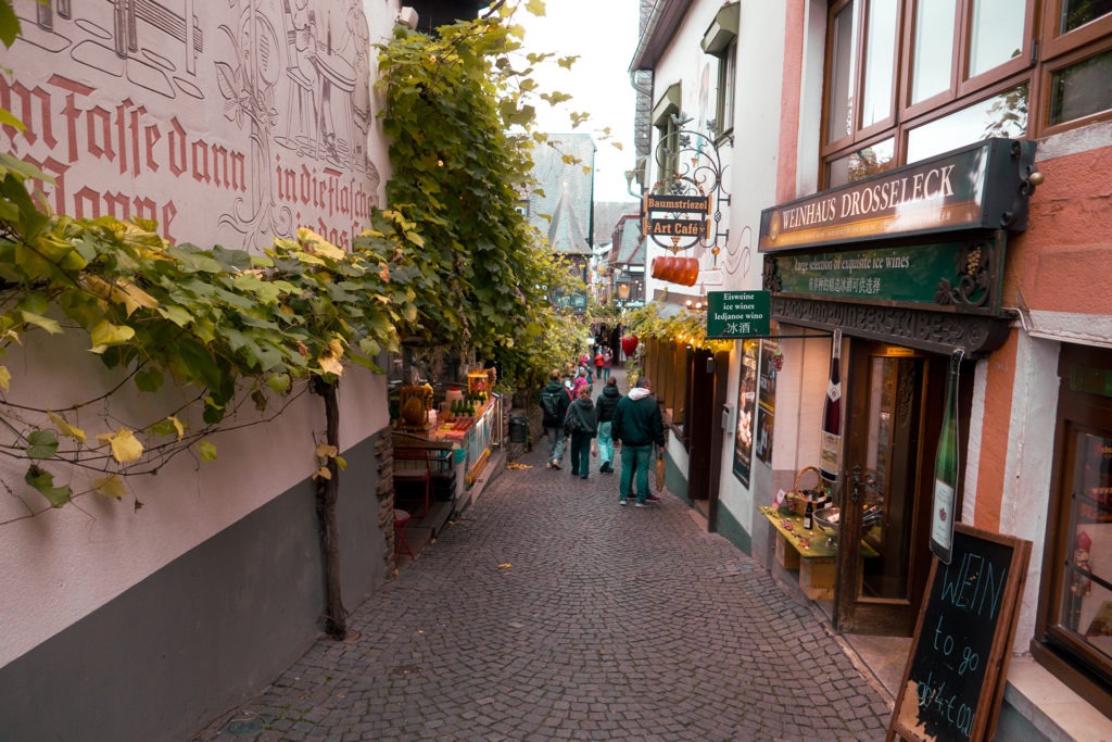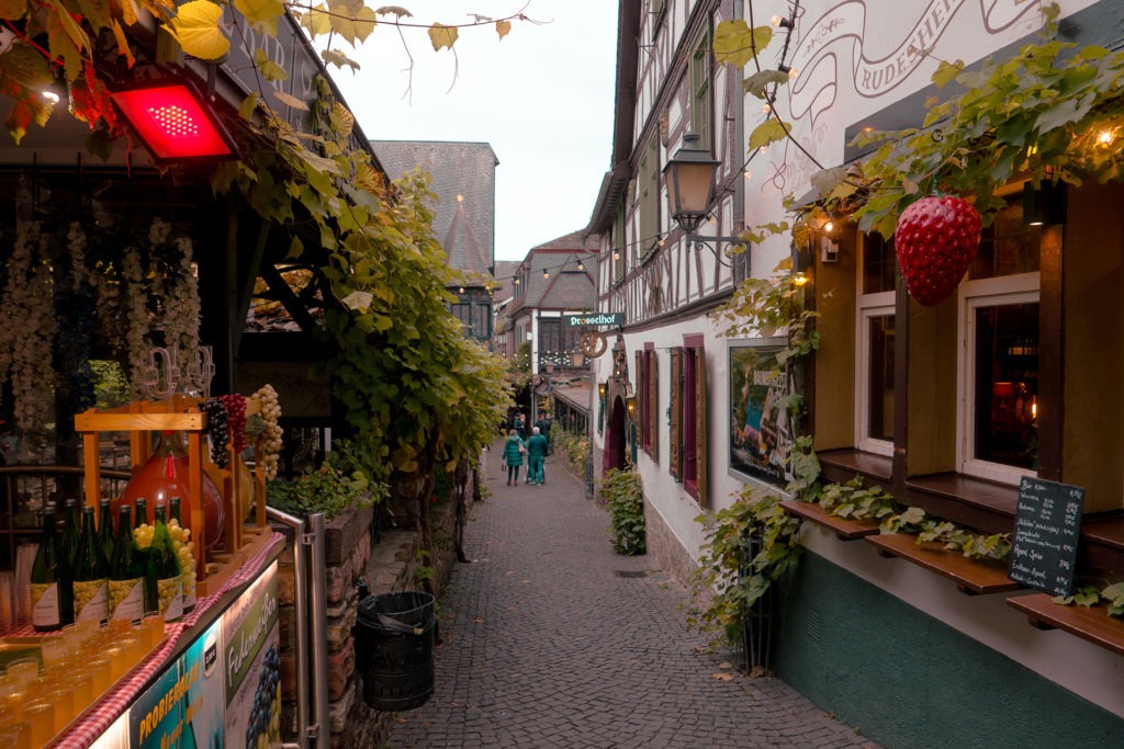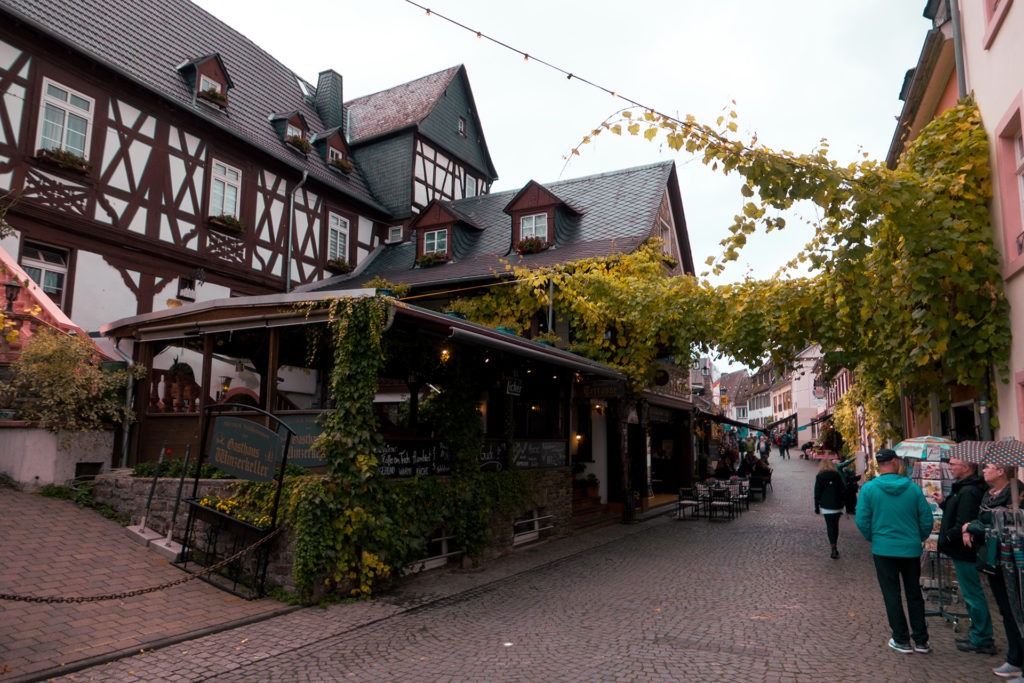 Im Herbst wirkt die Stadt am Rhein recht ruhig und gemütlich. Im Sommer hingegen schieben sich ganze Busladungen von Touristen durch die engen Gassen. Was Ende Oktober farbenfroh, aber mitunter nass und wenig einladend wirken mag, lädt im Sommer bei milden Temperaturen mit Sicherheit zum Verweilen ein. Kulinarisch wird fast alles geboten, über die Qualität des Weines muss man sich bestimmt auch keine Gedanken machen. Mit der Rüdesheimer Seilbahn kann man sich das ganze Geschehen dann auch von oben ansehen und am Ziel in den Weinbergen hat man eine unschlagbare Aussicht. Doch auch hier gilt, dass dies eher eine Unternehmung für den Sommer ist, denn die Gondeln der Seilbahn sind offen. Im Herbst zieht es da also ordentlich.